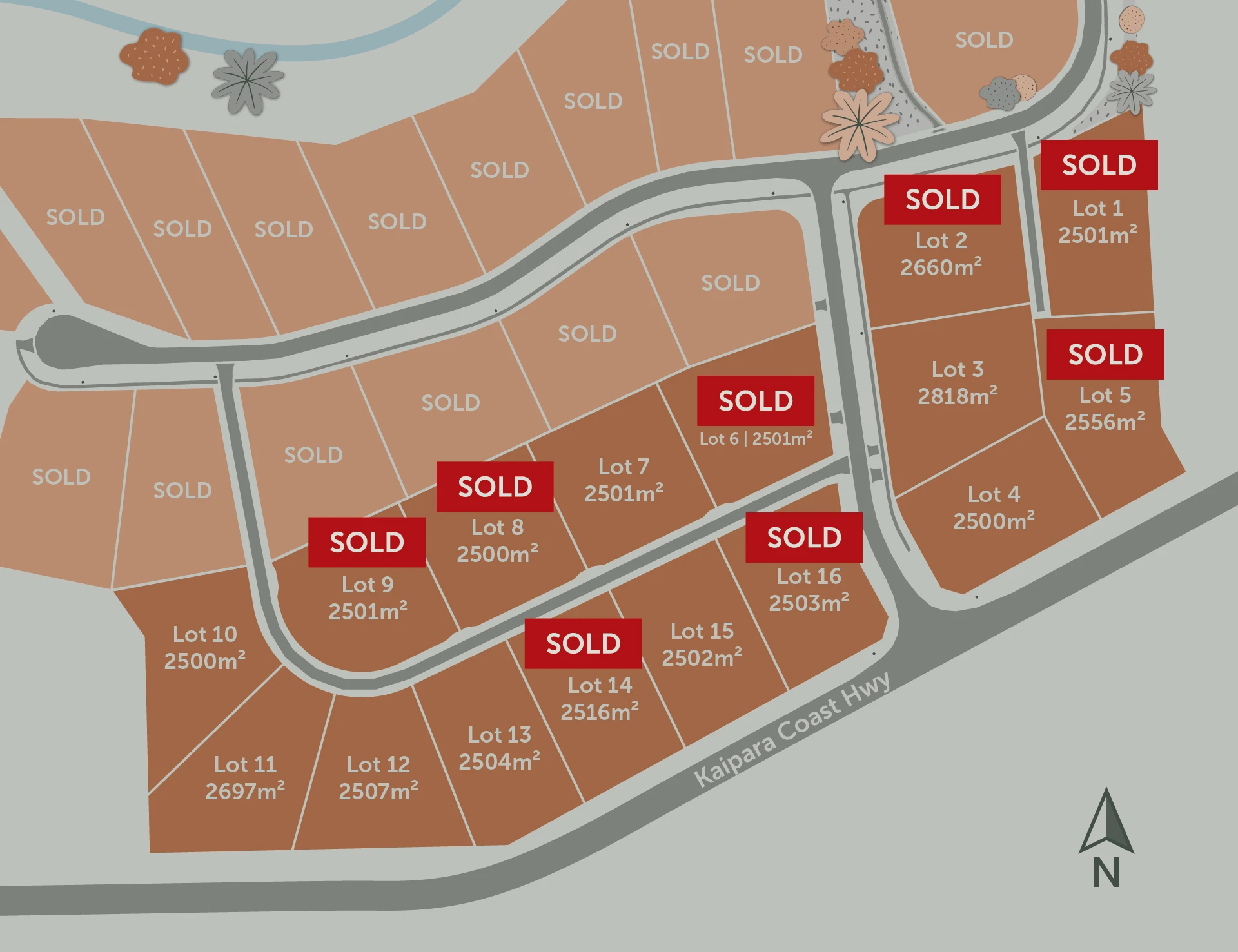 16 lifestyle sections comprise Stage 2. Sizes range from 2500m² to 2818m². Take this opportunity to build your dream home on a large, north-facing site.